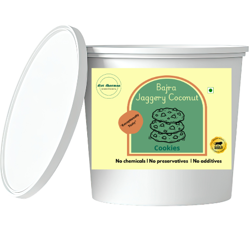 Experience traditional goodness with a modern nutrition touch through Diet Dharmaaa’s Bajra Jaggery Coconut Cookies.