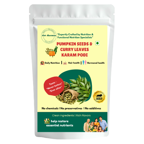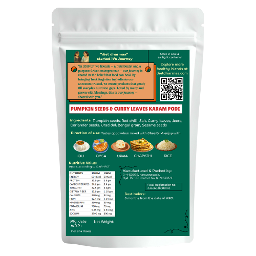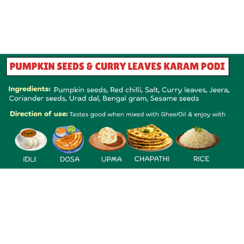 Introducing a delicious twist to traditional podis — Pumpkin Seeds & Curry Leaves Karam Podi.