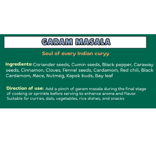 Add a pinch of garam masala during the final stage of cooking or sprinkle before serving to enhance aroma and flavor. Suitable for: