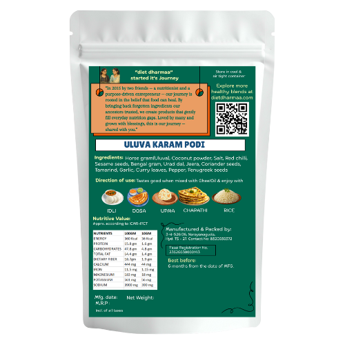 “Uluva Karam Podi – Horse Gram Spicy Podi Mix” – diet dharmaa – 100 GM