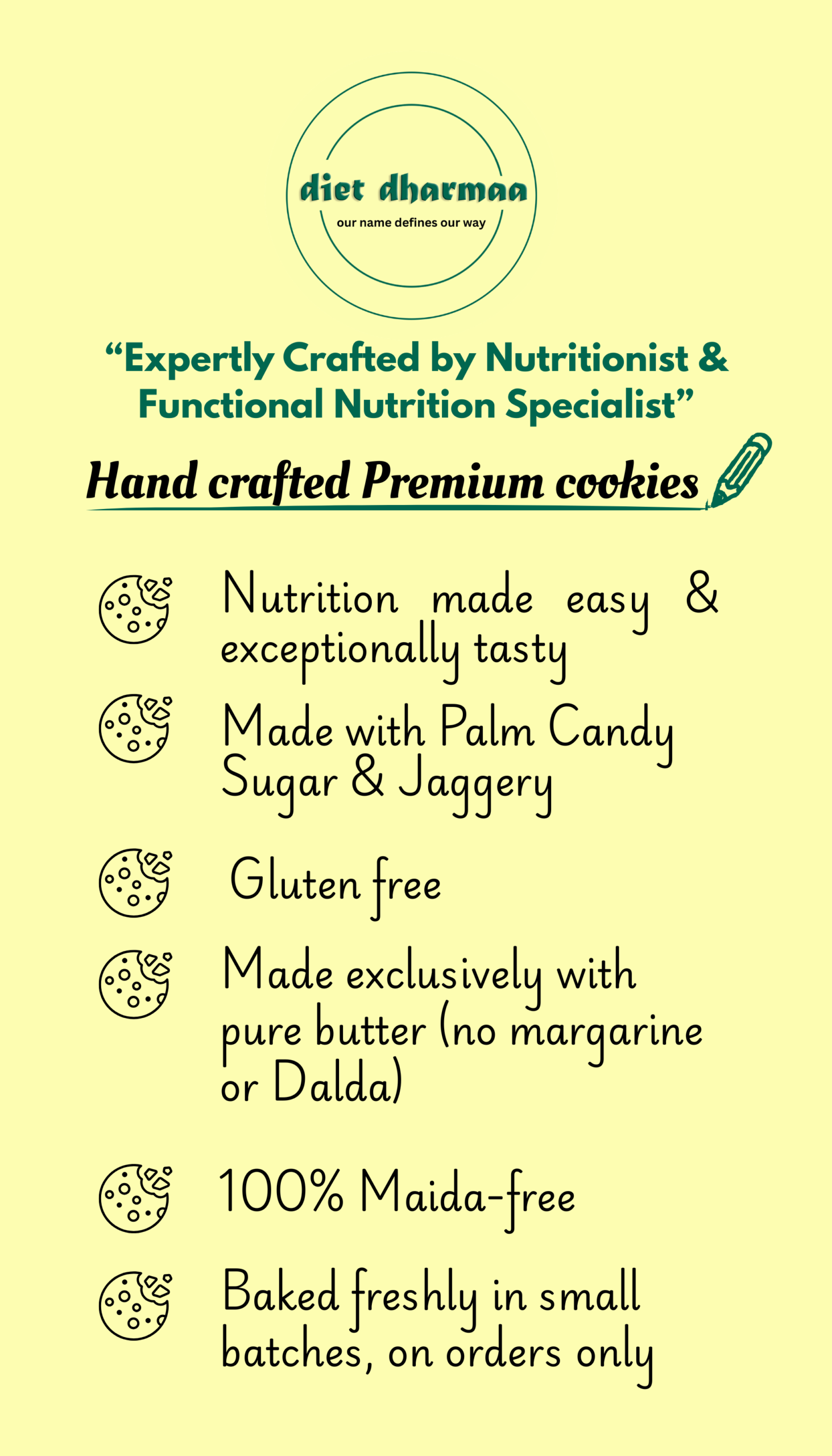 Made using wholesome raagi (finger millet) flour, sunflower seeds, sesame seeds, pure unsalted butter, and naturally sweetened with palm candy sugar, these cookies offer both crunch and nourishment in every bite.